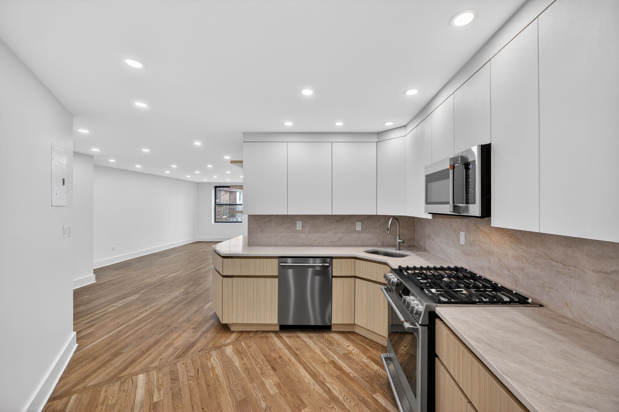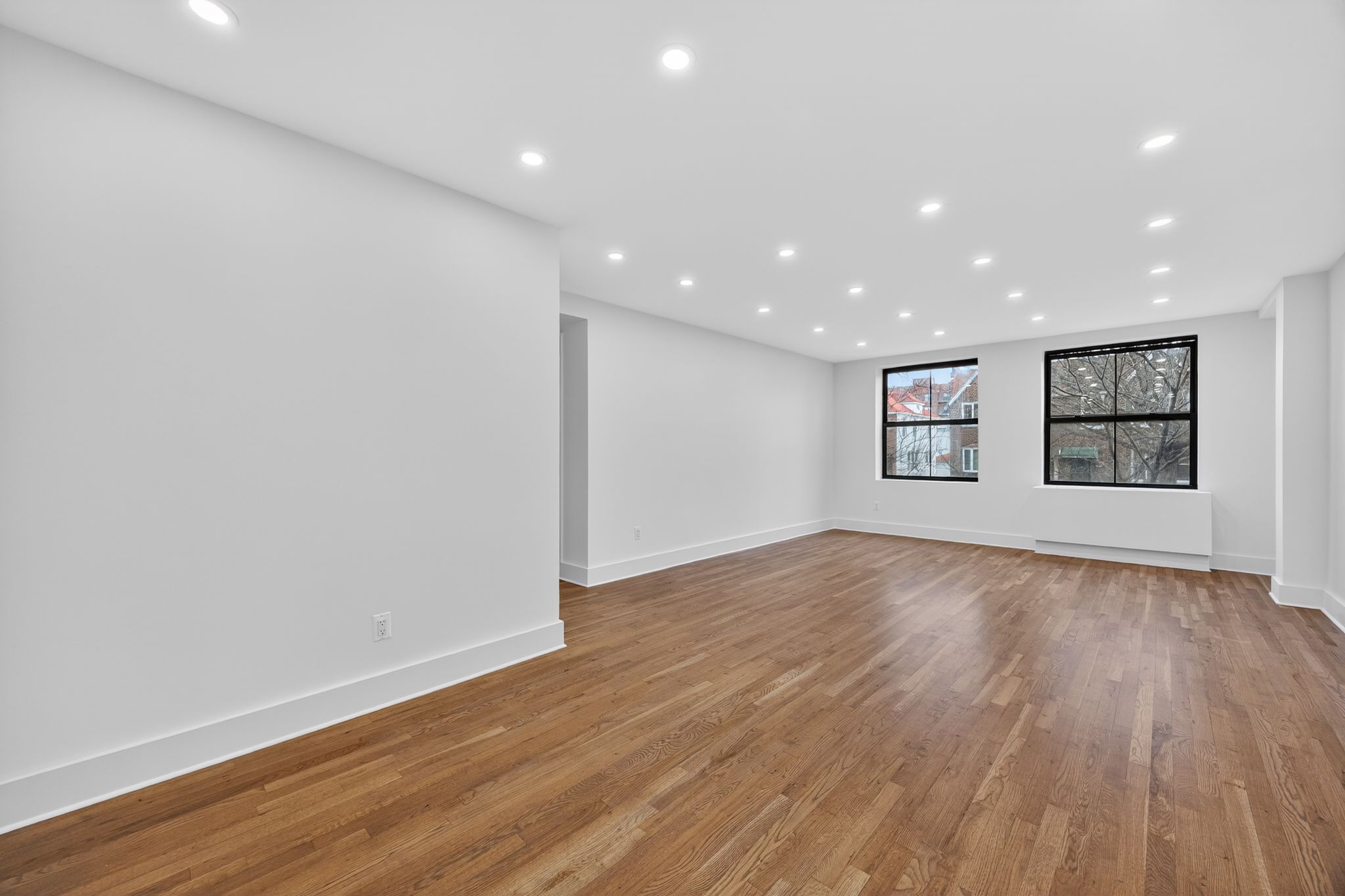 Bright, open-plan living with high-end finishes, separate dining area, lots of windows, abundant natural light, and designer high-end kitchen and bathrooms — perfect for comfortable city living or a stylish Brooklyn pied-à-terre, steps from Prospect Park.