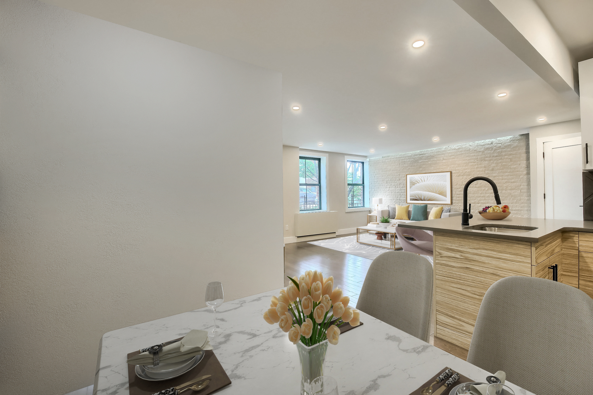 Experience the perfect blend of space, style, and convenience in this stunning 3-bedroom, 2-bathroom duplex located in a well-maintained condo building surrounded by lush green grounds, just steps from Prospect Park. This home features an open-concept layout filled with natural light and contemporary finishes throughout, thanks to oversized windows.