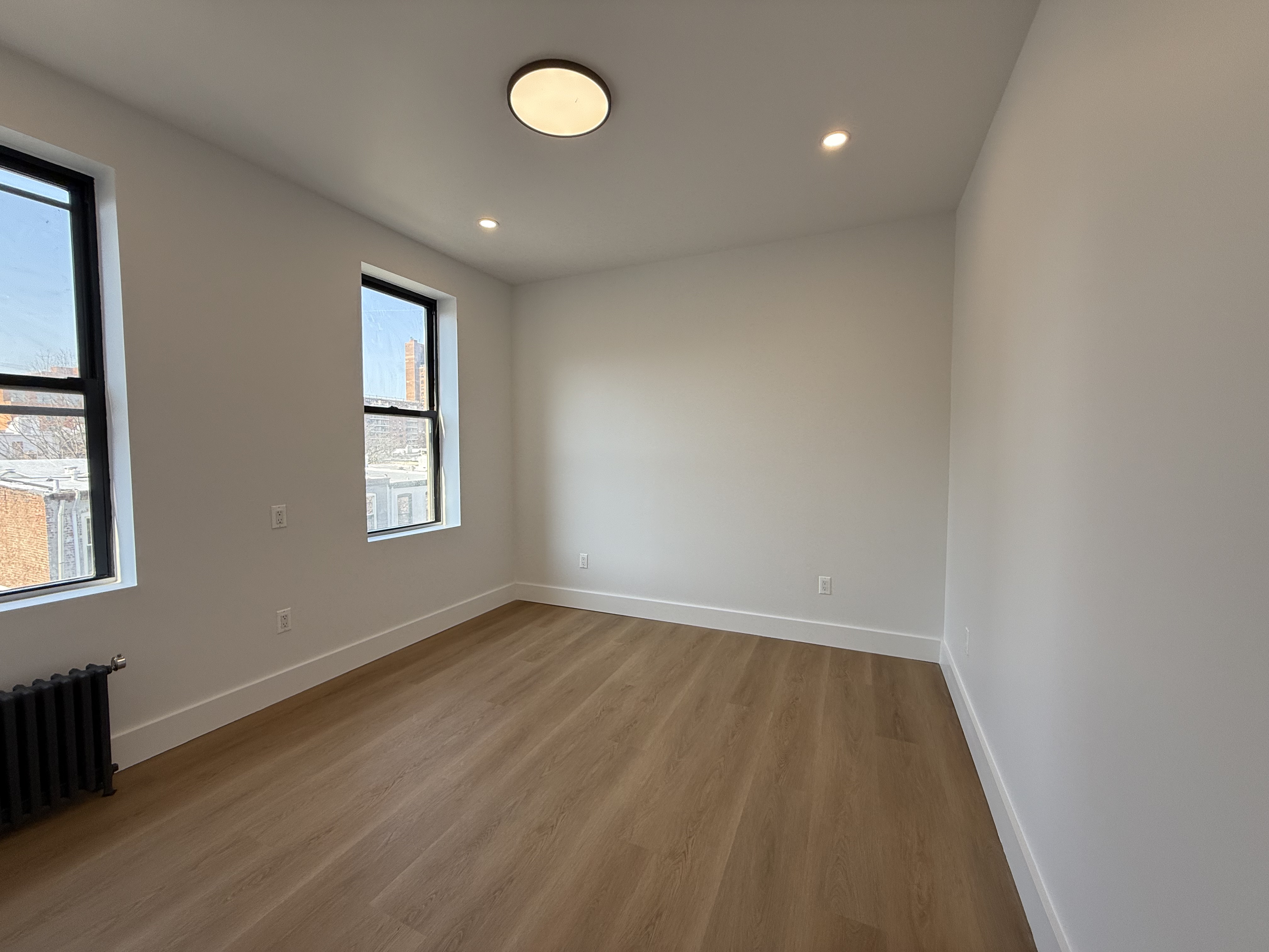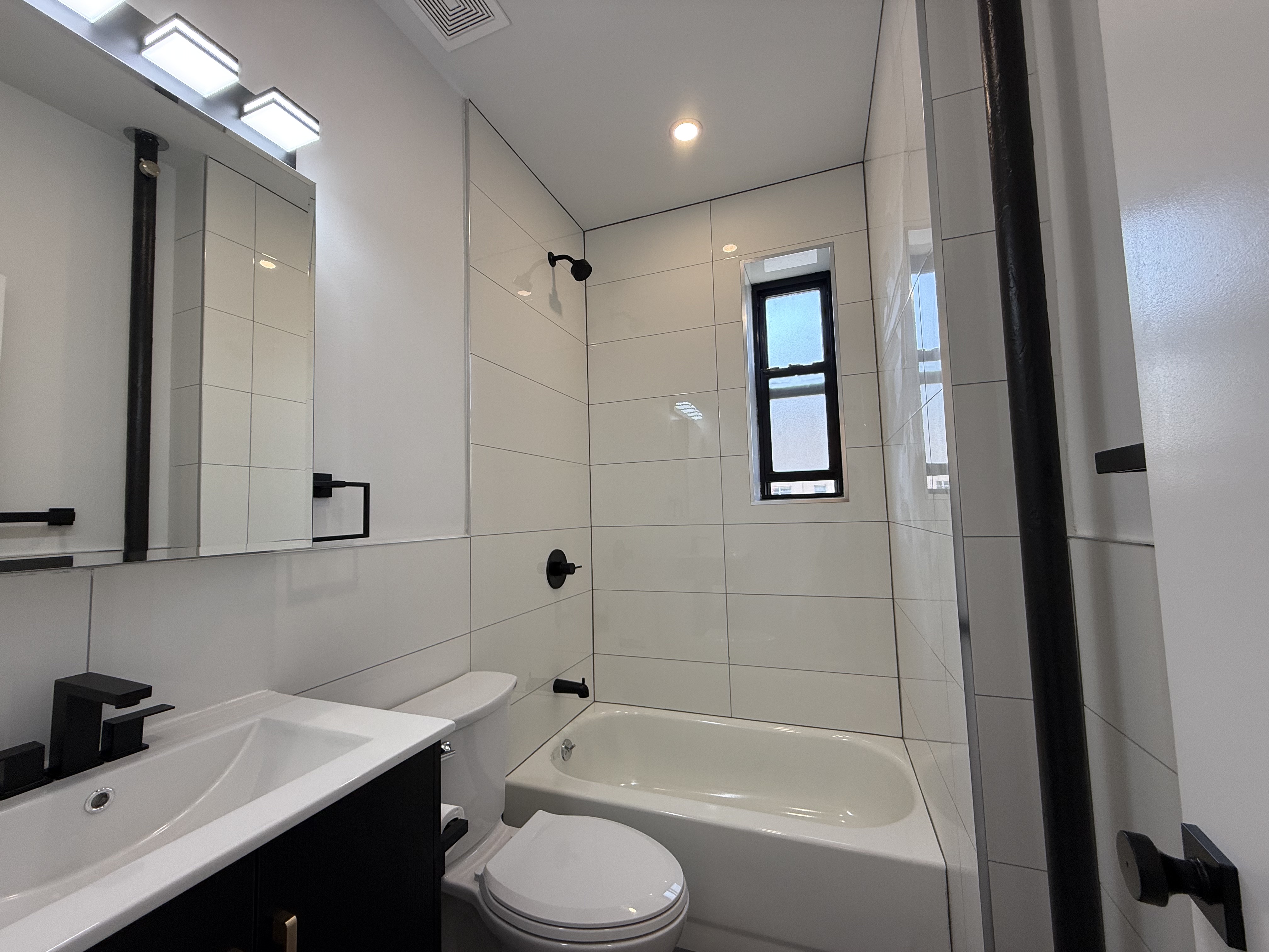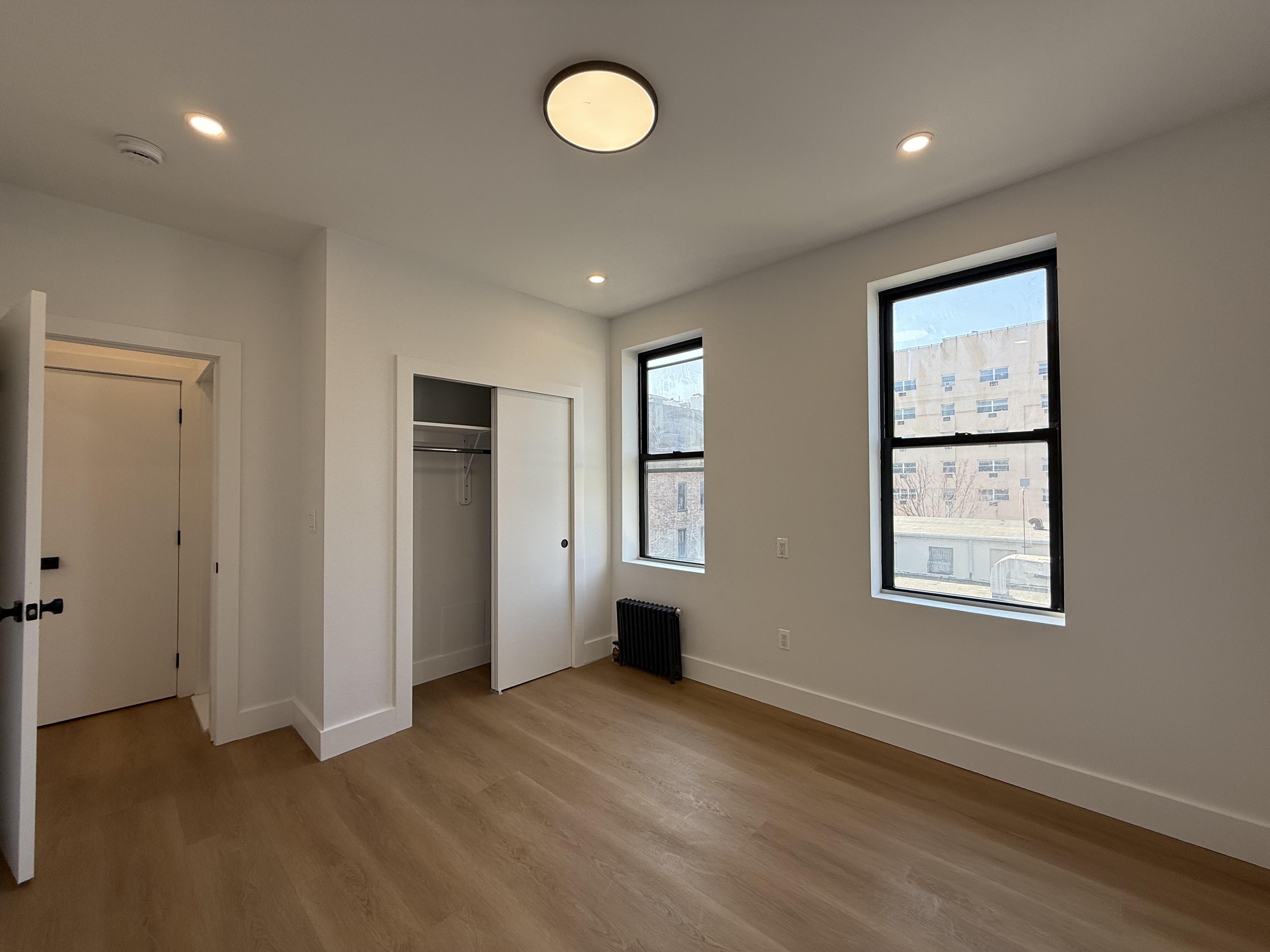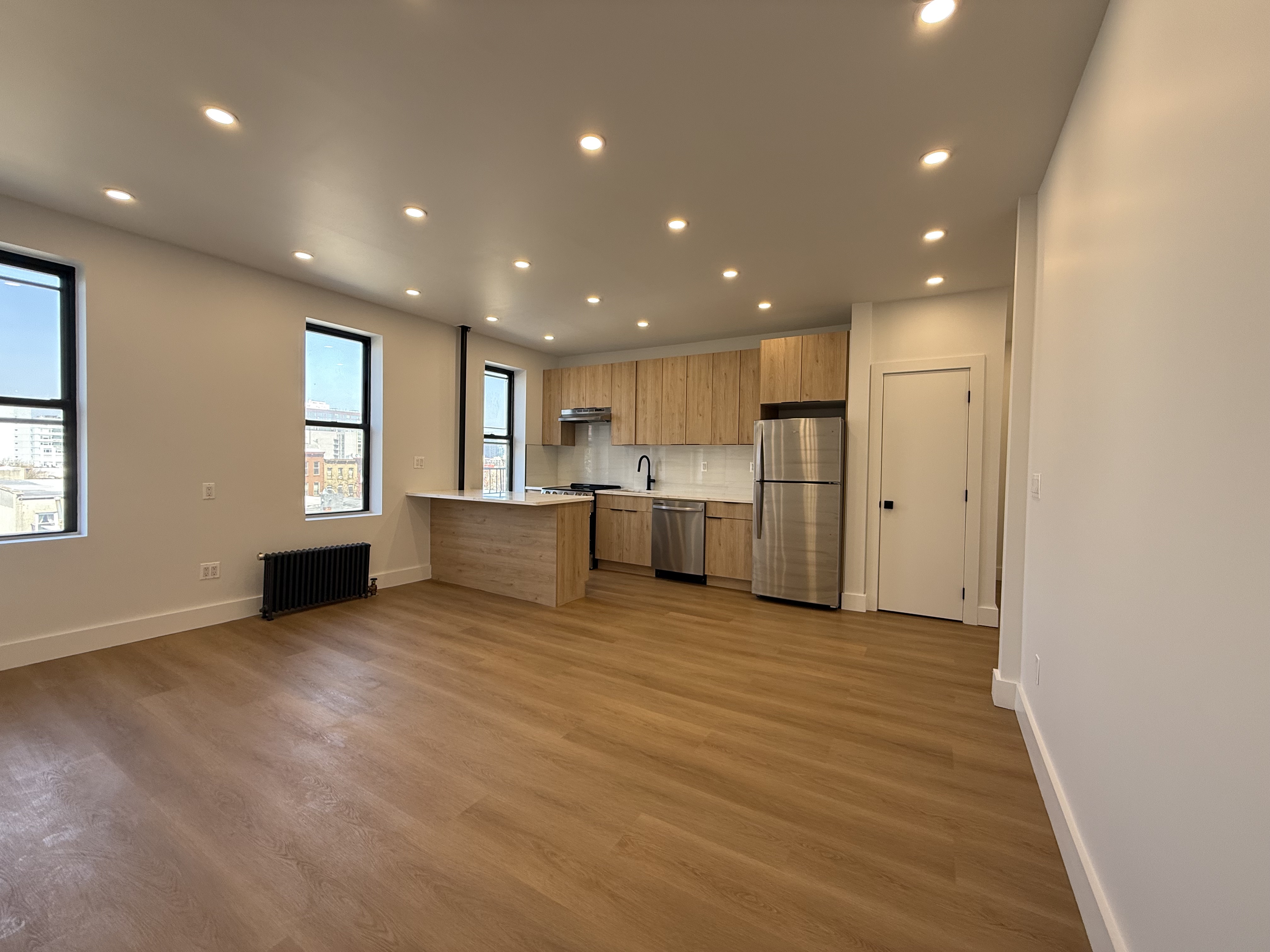 Completely renovated with recent upgrades. The building features a well-maintained pre-war lobby, recently redone. Everything is brand new. The apartment is sunny and spacious, with ample closet space, natural grain floors, and LED spotlights. The modern kitchen features a quartz countertop overlooking a sunlit living room and includes stainless steel appliances. Numerous windows provide abundant natural light. The large bedroom contains a wall-to-wall closet. The bathroom is finished with high-end tiles. This property is a must-see and is expected to lease quickly.